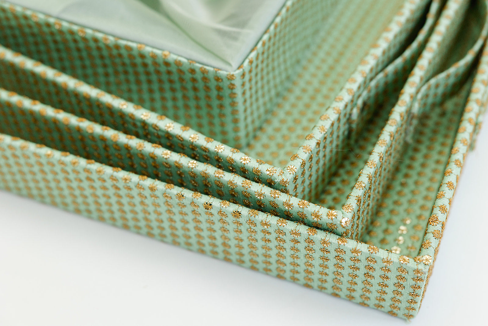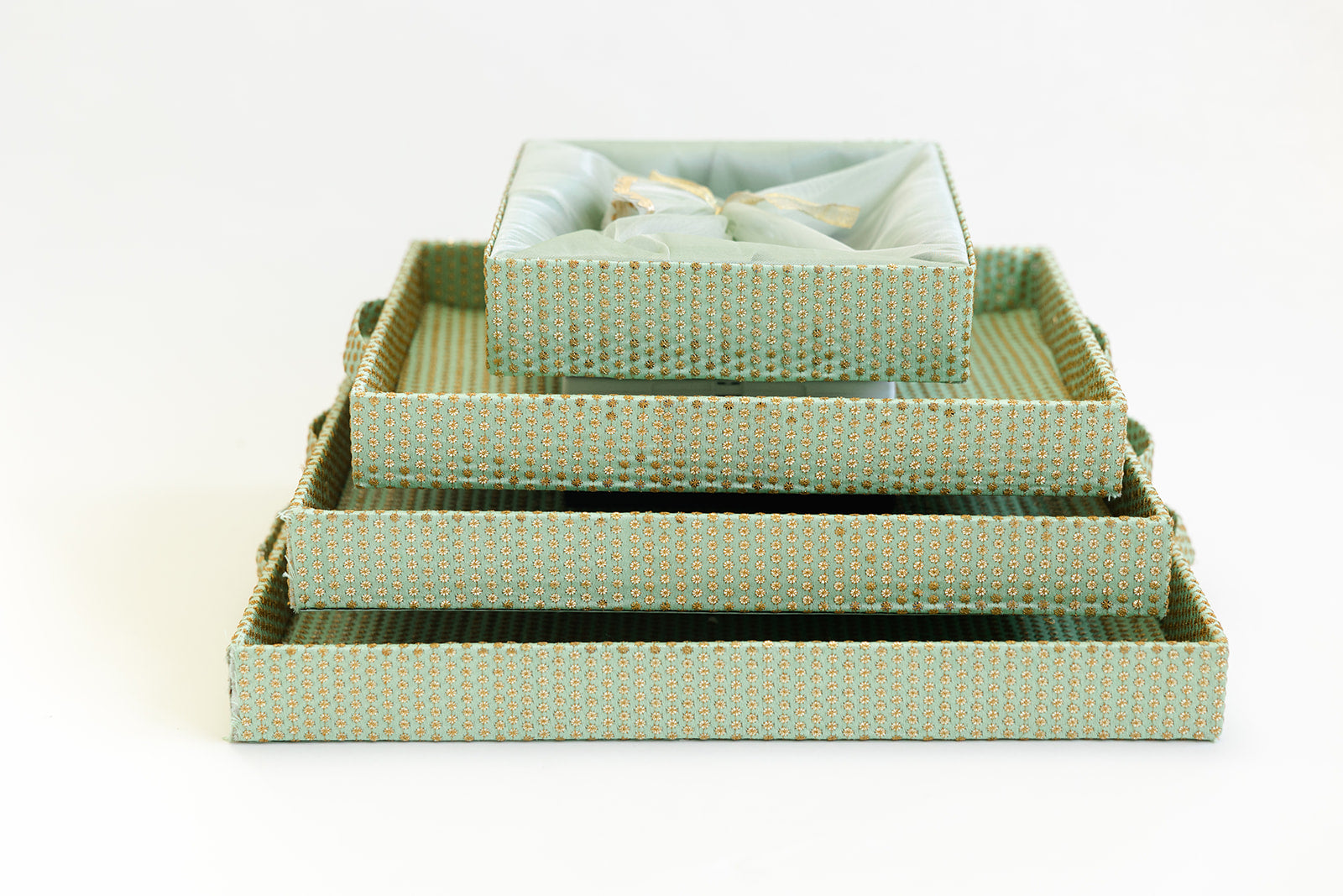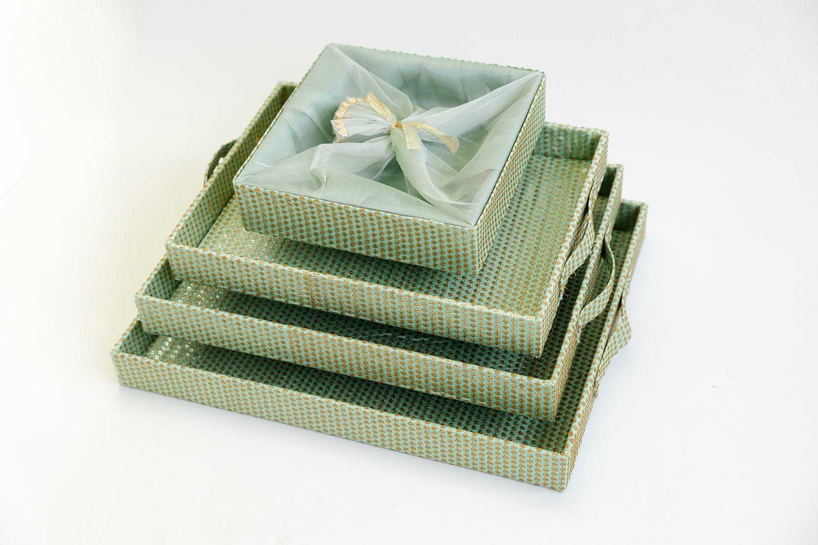 Luxurious Green Gift Hamper Tray Set with Sitara Work for Gifting at Weddings and Festive Celebrations