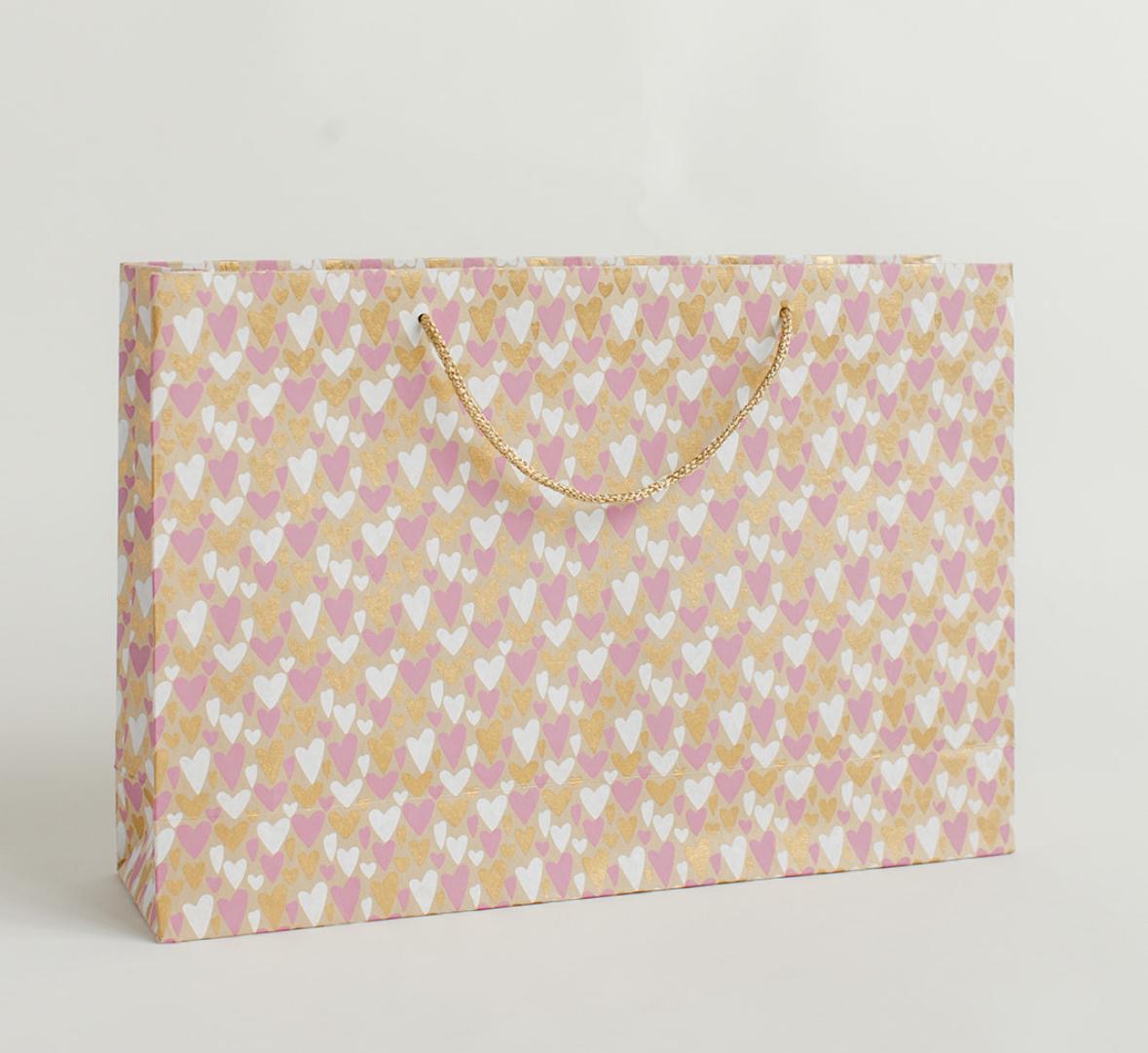 Charming Heart Print Gift Bag – Pink, White & Gold